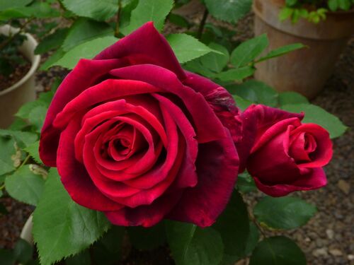 やっと咲いてきました。 ご存知の方も多い、パパ・メイアン。 ベルベット感ある、赤黒い花びら。 バラといえば、この香りというような、強く甘いダマスク香。 実は、この2つだけではお勧めしませんが、 案外、育てやすいのです。 黒点にはなりますが、「まぁ…