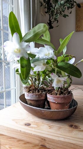 写真は数日前のものですが、一昨年勤めていた職場で枯れそうだったデンドロをもらい、2年ほど育てていたら、今年咲きました。 園芸品種(名前は、セカンドラブ“トキメキ”)なので、きれいですよね。 ただ、4株のうち2株しか咲きませんでした。元気が良さそ…